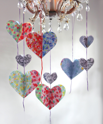 Make paper hearts from origami papers and decorate for Valentine’s Day.